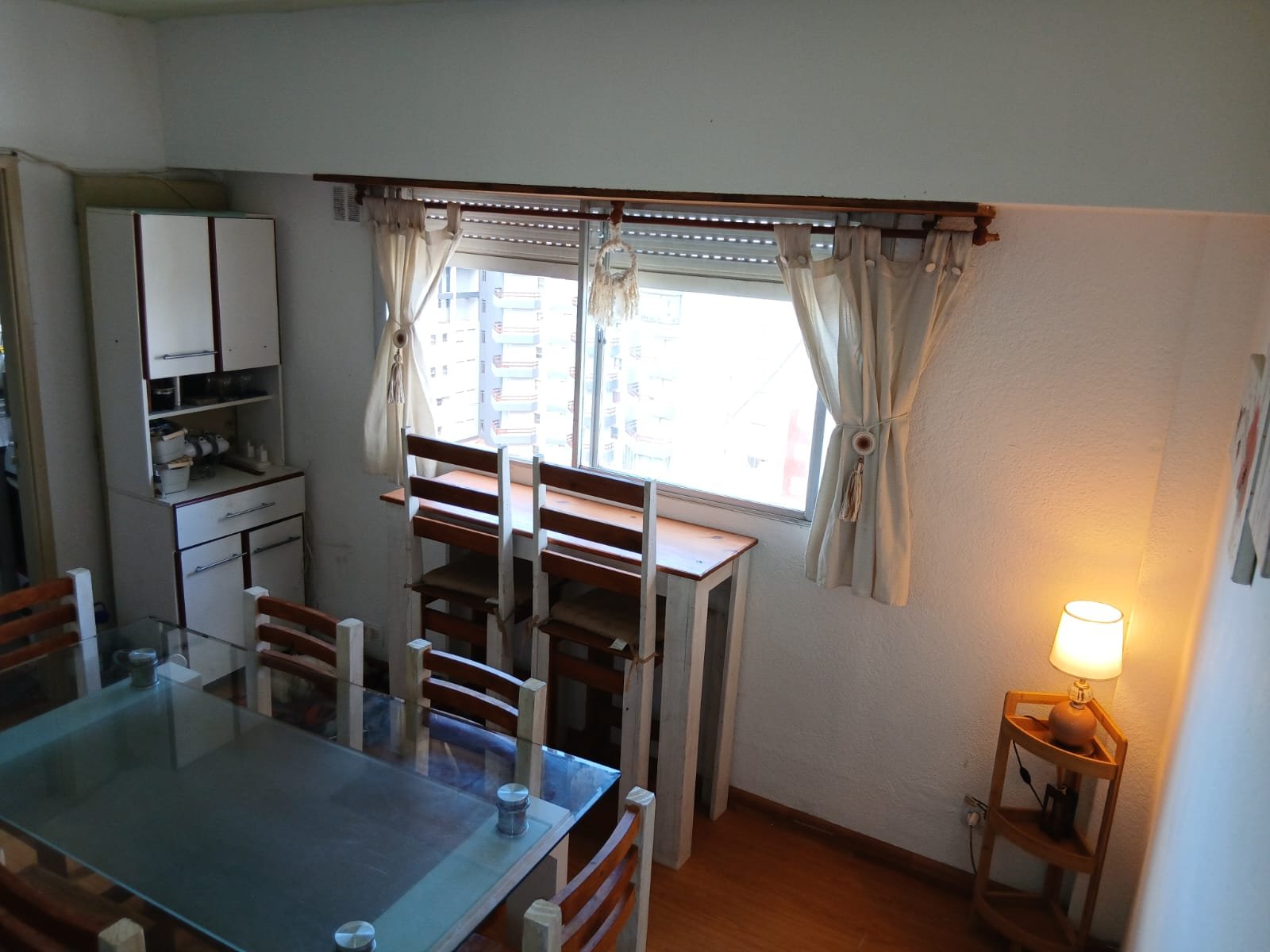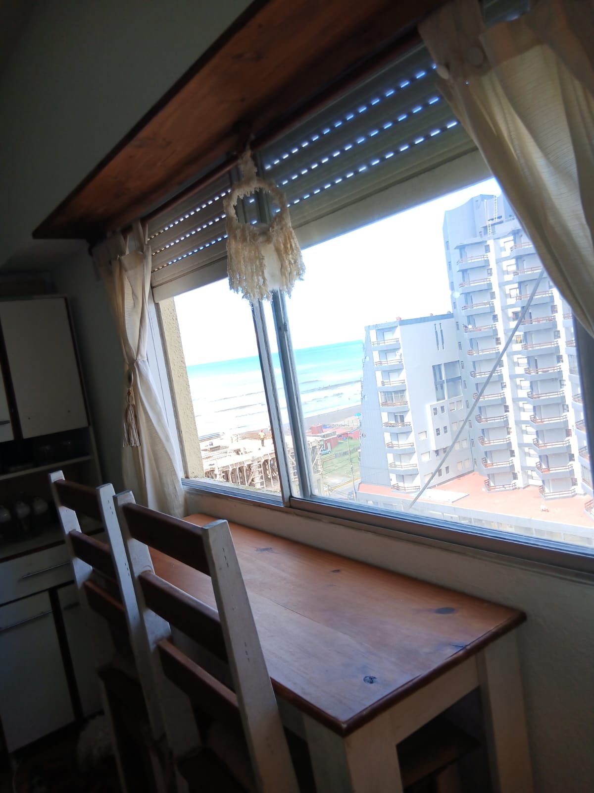 Departamento de 2 amb ubicado en 8° piso – sobre calle principal ( peatonal) – vista lateral al mar y calle chiozza – consta de comedor con barra sobre ventana vista al mar y peatonal – cocina separada – gas natural – instalacion nueva de gas y electricidad – baño con mampara de vidrio – habitación con placard grande – cochera cubierta a una cuadra ( sobre falkner ) portón automático